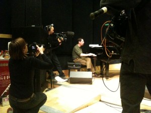 Had an amazing shoot today at SIR studios, where, we were told “A very professional” band was rehearsing very loudly across the hall from Stage 2. This iphone photo doesn’t do it justice….About 4 weeks out from the premiere of “My Coma Dreams.” Fred Hersch at the piano. Andy Shocken, camera left. Charlotte Lagarde, camera right.