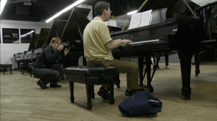 Fred rehearsing on the piano he will playing on at the Premiere in a week. Beautiful pianos, great sound and terrible light. Can we all agree that it’s time to get rid of fluorescent lights.